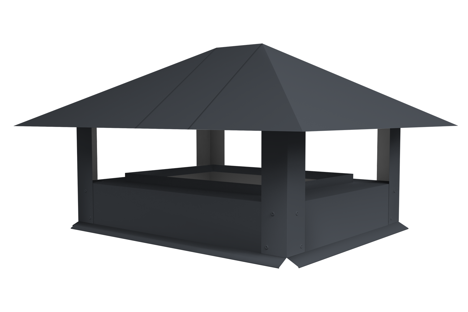 Благодаря основанию дымника (стальной обруч), достигается дополнительная защита от разрушения, т.к. оно стягивает верхнюю часть трубы. Также дымник придает кровле эстетичный и законченный внешний вид.