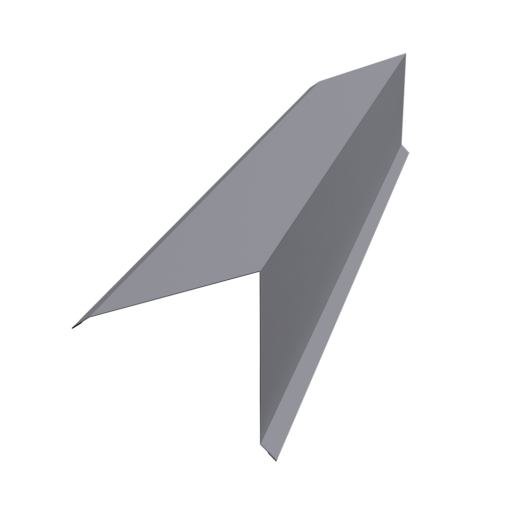 Планка конька односкатной кровли предназначена для защиты от попадания влаги, грязи в подкровельное пространство и от срыва листов порывами ветра, закрывая листы металлочерепицы или профнастила на коньке и наружных переломах кровли.