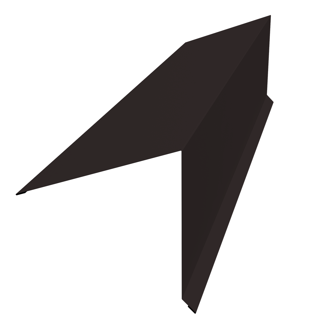 Планка конька односкатной кровли предназначена для защиты от попадания влаги, грязи в подкровельное пространство и от срыва листов порывами ветра, закрывая листы металлочерепицы или профнастила на коньке и наружных переломах кровли.