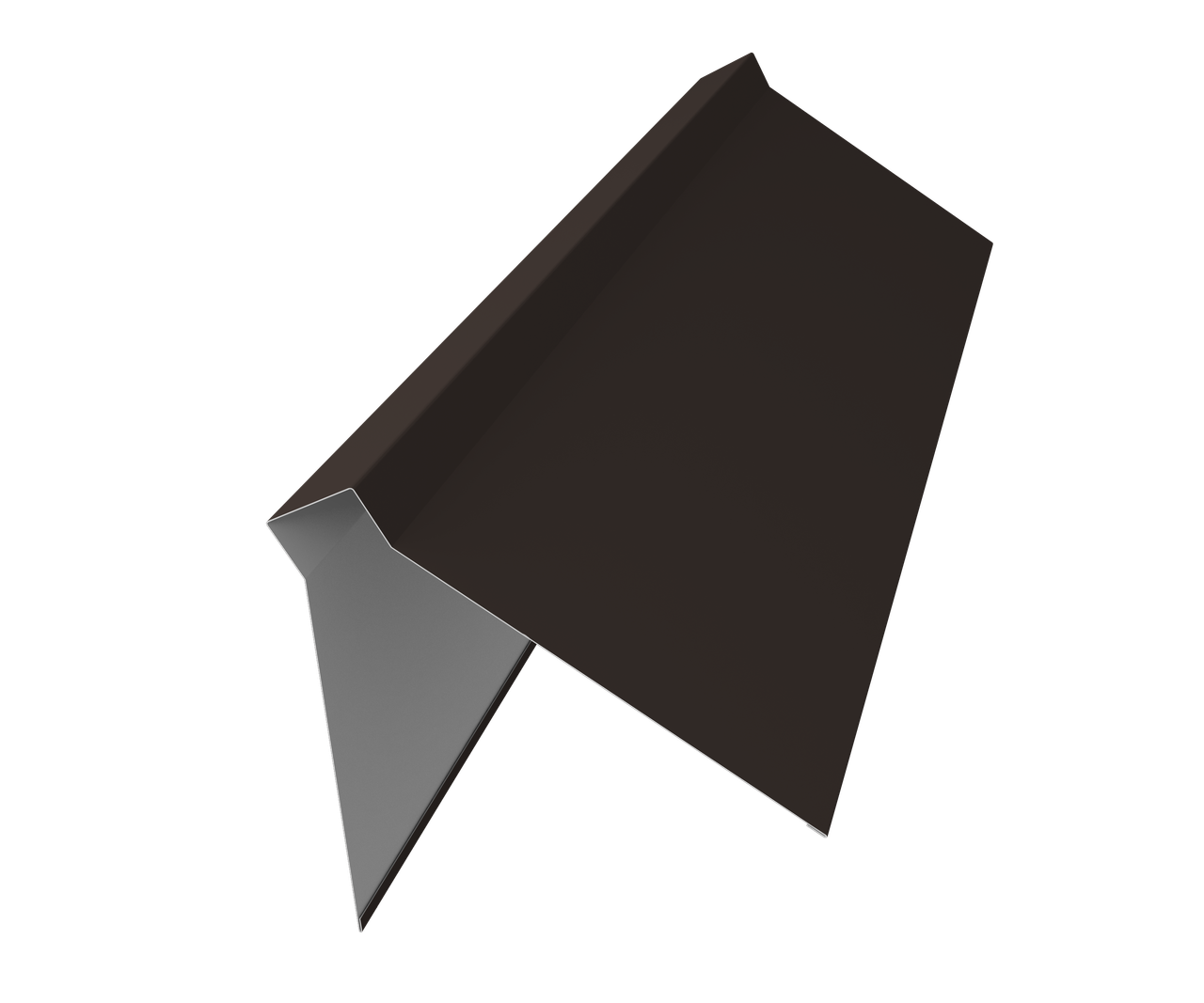 Планка конька плоского предназначена для защиты от попадания влаги, грязи в подкровельное пространство и от срыва листов порывами ветра, закрывая листы металлочерепицы или профнастила на коньке и наружных переломах кровли.