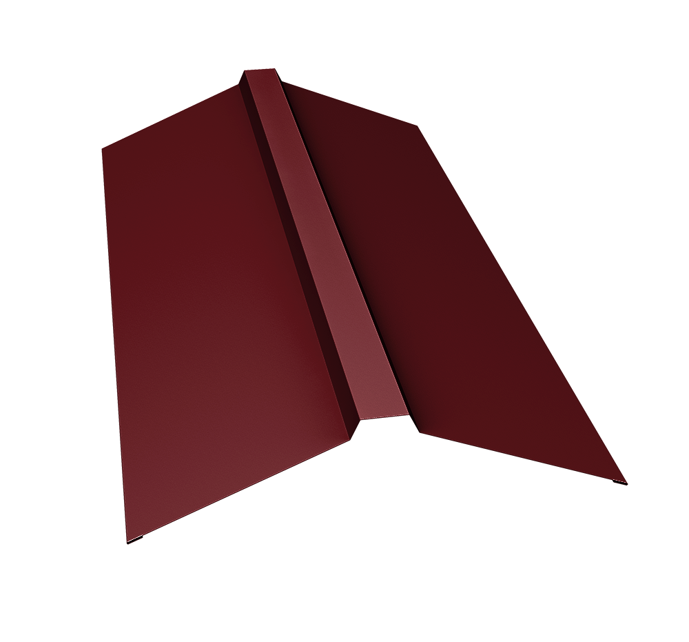 Планка конька прямоугольного предназначена для защиты от попадания влаги, грязи в подкровельное пространство и от срыва листов порывами ветра, закрывая листы металлочерепицы или профнастила на коньке и наружных переломах кровли.