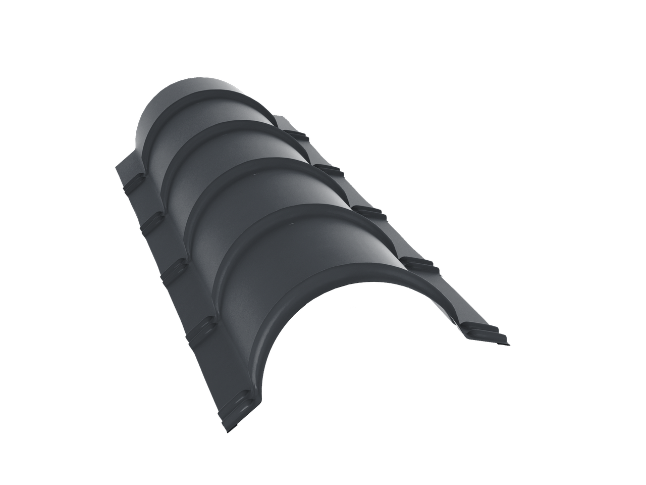 Конек полукруглый / полукруглый малый — защищает листы металлочерепицы от смещения при сильных порывах ветра.