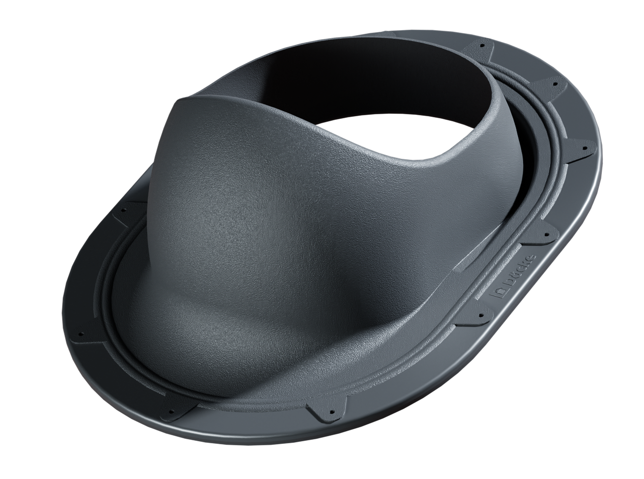 Элемент проходной Docke Next данный элемент служит для монтажа на кровлю вентиляционного выхода или трубного аэратора, для организации проветривания подкровельного пространства, в качестве кровельного покрытия для установки данного элемента используется фальцевая кровля и гибкая черепица.